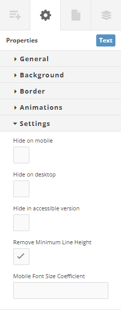 You can fix this by adjusting the size of the font for mobile devices using the Mobile Font Size Coefficient setting. This can be found in the Settings section of the Properties Control Column: